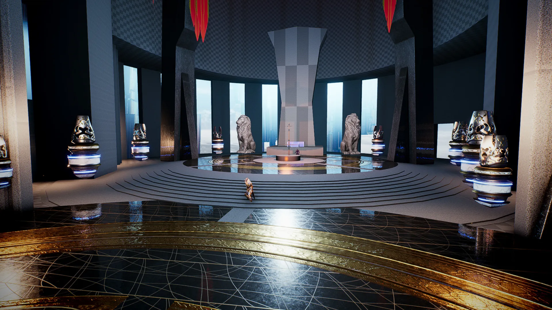 The arena sits at the top of the monolith, symbolizing Macros' ascent to godhood.Mano e mano combat, utilizing all skills the player learned throughout their journey.